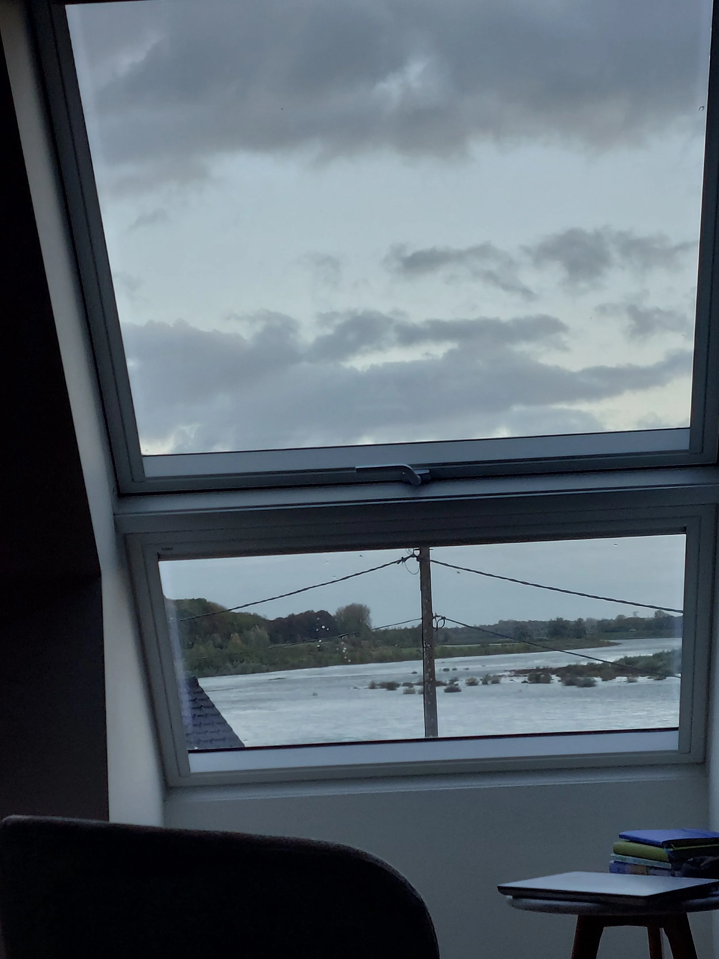 Ik ben een seconde aan jou zijlijn, een zucht, een kleine levensadem in de miljoenen jaren dat jij al stroomt, dat jij je water vervlecht met deze oevers. Zoef zoef daar ga je.