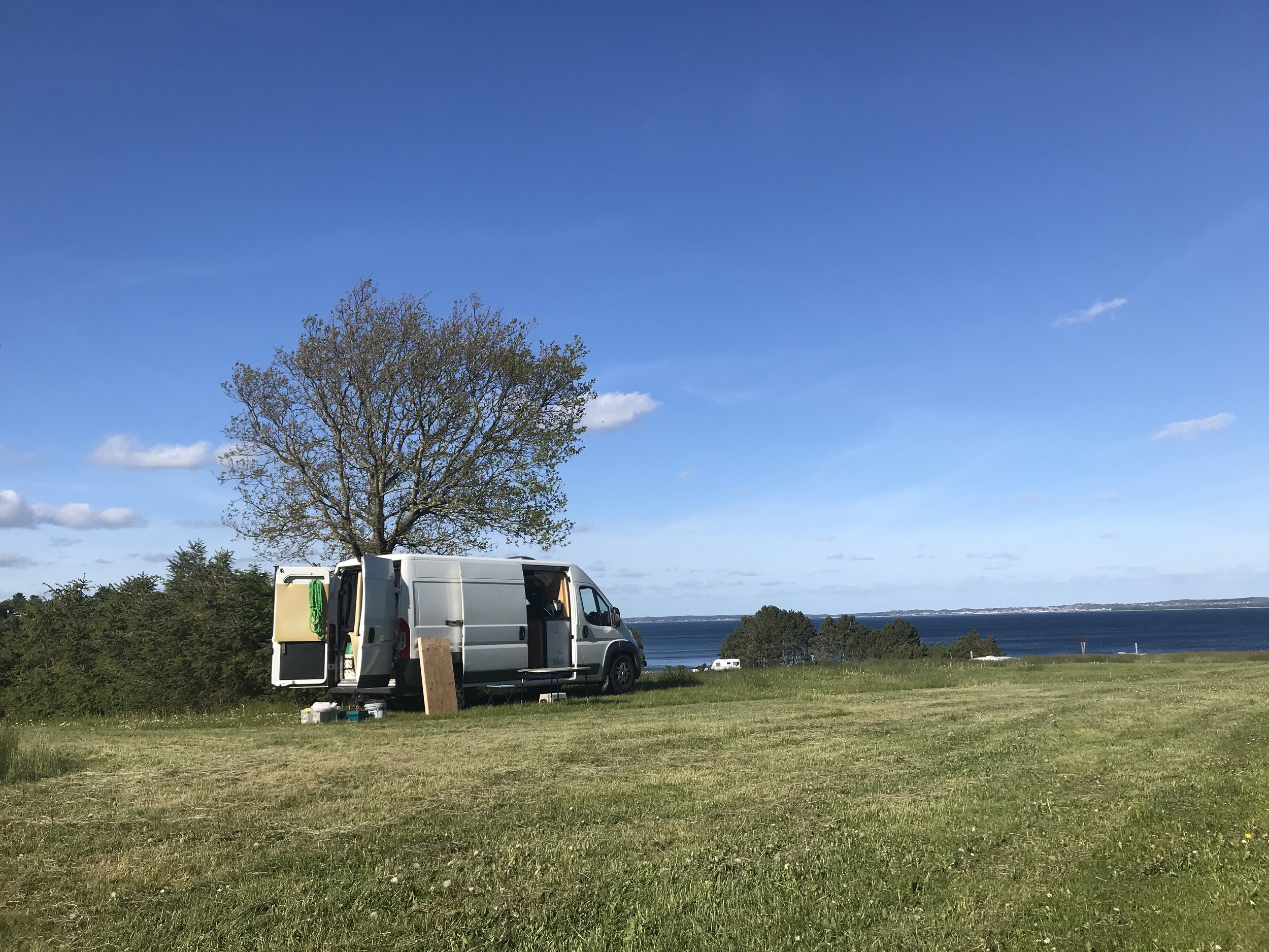 De campings in Denemarken zijn verrassend netjes. De plekken zijn goed onderhouden en voelen fris aan. De sanitaire blokken waren schoon, vaak aangenaam warm – zowel qua omgevingstemperatuur als water. Dat was heerlijk, zeker omdat het weer in mei nog fris kon zijn. Wat me ook opviel: de waterdruk. In zowat alle douches kregen we een stevige, warme straal. Onze staanplaatsen waren meestal groen en ruim. We trokken in mei rond, dus het was ook overal nog vrij rustig. Echt aangenaam.